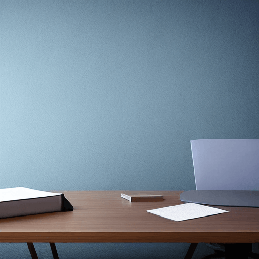 A white document with details of a tech note is on a desk in a bright room. The desk is in front of a window with a view of a cityscape. The textured wall behind the desk is a blue color. The light blue color of the document and the desk contrast nicely with the dark blue of the city view.